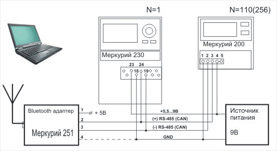 Bluetooth адаптер «Меркурий 251» представляет собой преобразователь интерфейса Bluetooth в CAN/RS-485/RS232, и предназначен для подключения к персональному компьютеру по радиоканалу одного или нескольких электросчетчиков "Меркурий" со встроенными интерфейсами CAN/RS-485, либо устройств с интерфейсом RS-232